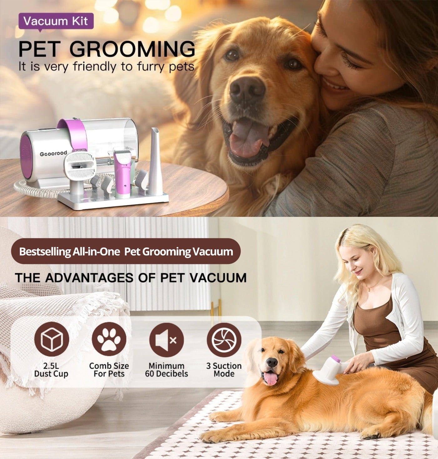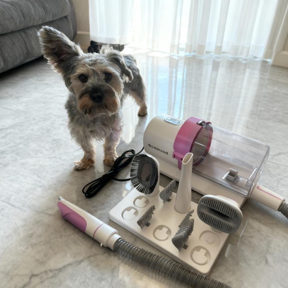 Absolutely amazing!!! We tried the grooming kit today and it blew us away! Super easy to use, very quiet, and the results are top-notch. The suction is incredible—it grabs the hair as you trim, giving a much cleaner cut. Our Golden-Doodle was totally relaxed the whole time! Highly recommend this to any pet owner!